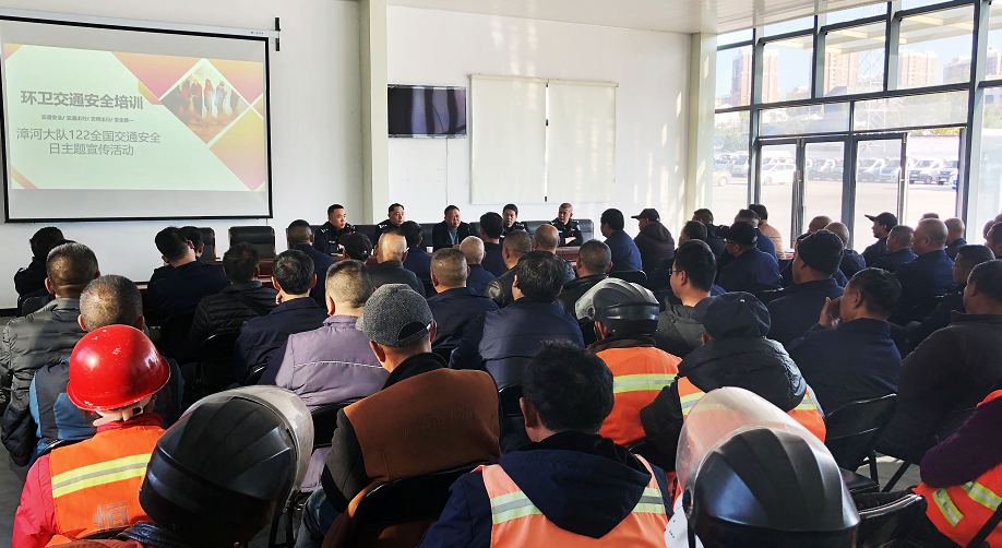 为提升环卫人员交通安全意识和自我保护能力,规范道路保洁安全作业,预防和减少环卫工人交通事故的发生,11月29日,荆西公司邀请市交通警察支队漳河大队一中队警官为近百名环卫人员开展交通安全教育培训。